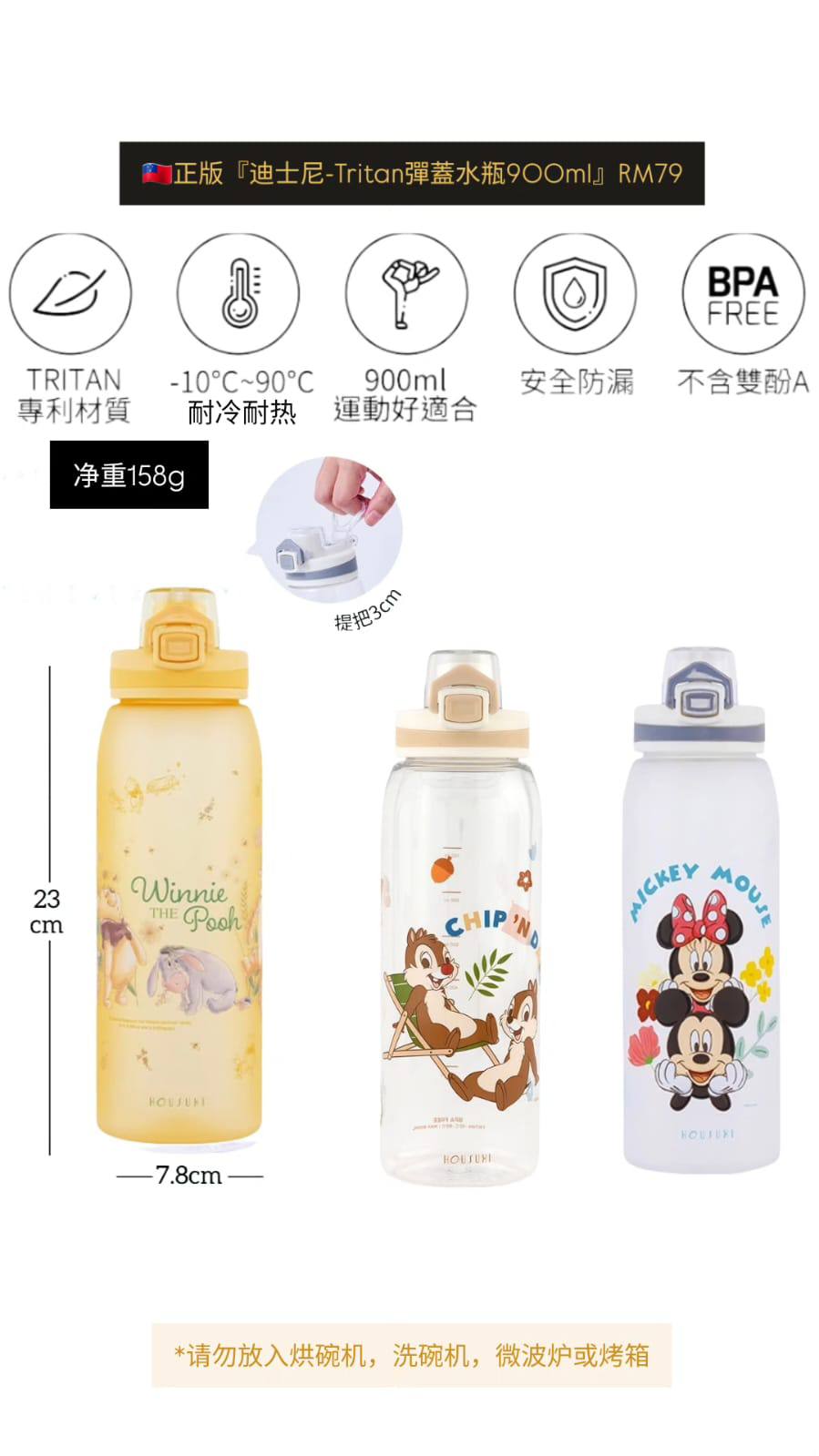 🇼🇸正版『迪士尼-Tritan彈蓋水瓶900ml』RM79 ✅900ml輕量便攜 ✅安全鎖設計防止上蓋彈開外漏 ✅採用無毒耐磨TRITAN材質 🇼🇸台湾代购 赶快PM我们下单📲📲