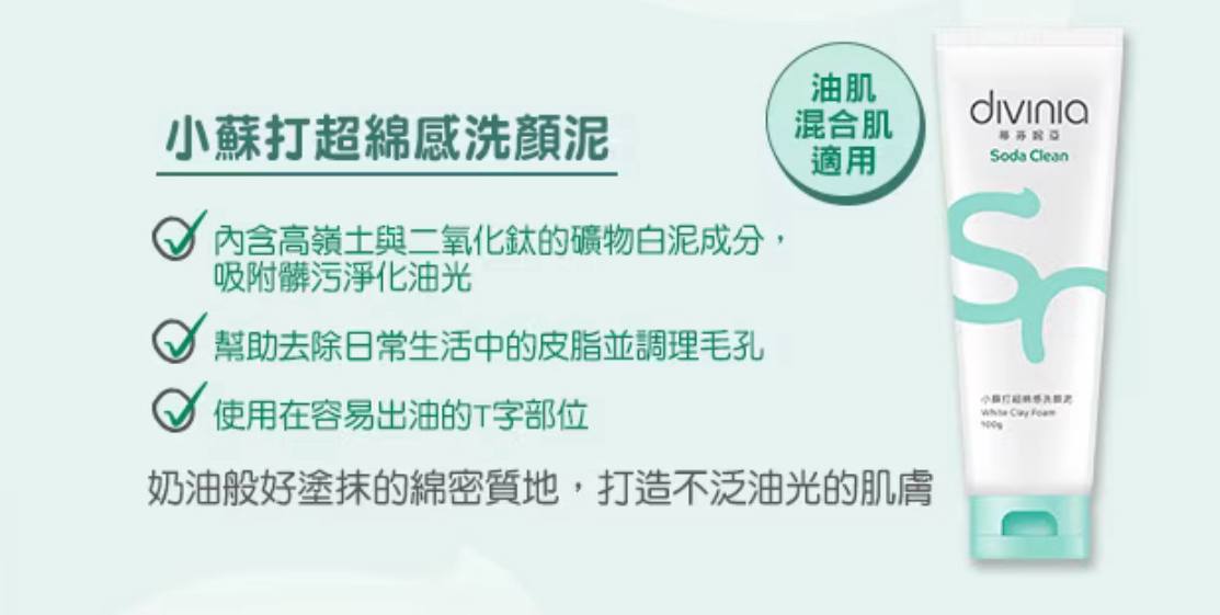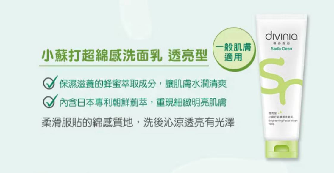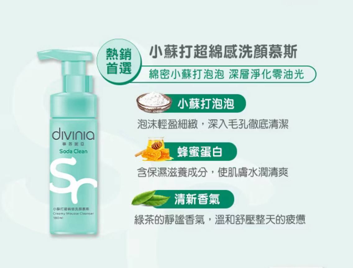 蒂芬妮亚Divinia小苏打洗卸系列✨ 平价又好用的台湾品牌 深层清洁毛孔 洗后不干涩 ☘️小苏打超绵感洗颜慕斯180ml RM39 ☘️小苏打超绵感洗颜泥100g RM29 ☘️小苏打超绵感保湿洗面乳100g RM29 ☘️小苏打超绵感透亮洗面乳 100g RM29 🇼🇸台湾代购 赶快PM我们下单📲