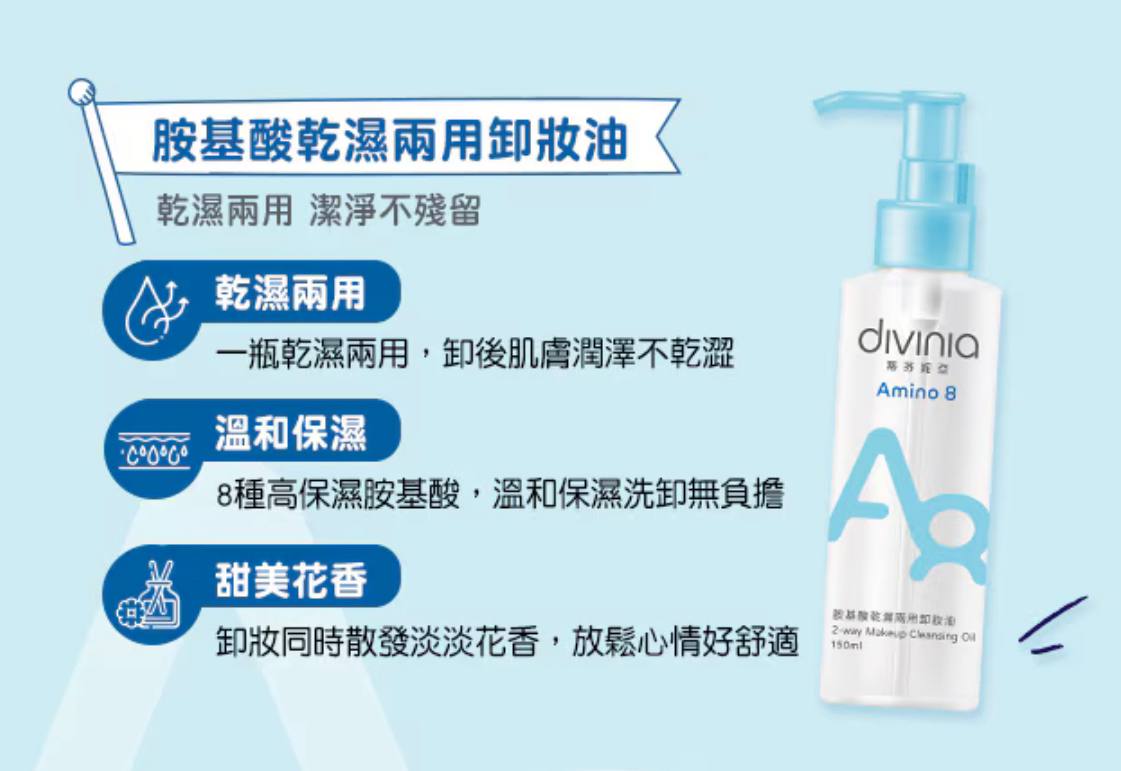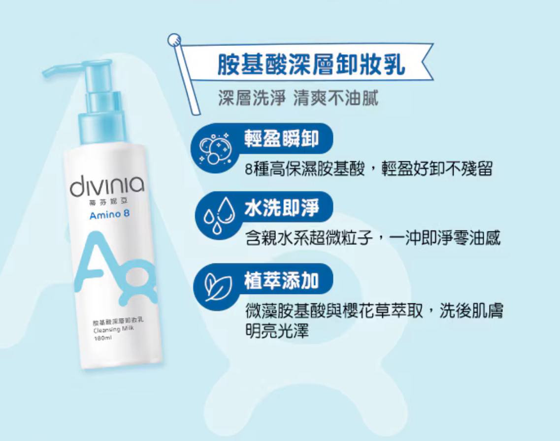 蒂芬妮亚Divinia胺基酸洗卸系列✨ 平价又好用的台湾品牌 温和成分 洗后不干涩 还很保湿水润 🌸胺基酸深层卸妆乳 180ml RM35 🌸胺基酸温和洗颜霜 100g RM35 🌸胺基酸眼唇卸妆液 120ml RM39 🌸胺基酸二合一洗卸慕斯 180ml RM39 🌸胺基酸干湿两用卸妆油 150ml RM39 🇼🇸台湾代购 赶快PM我们下单📲
