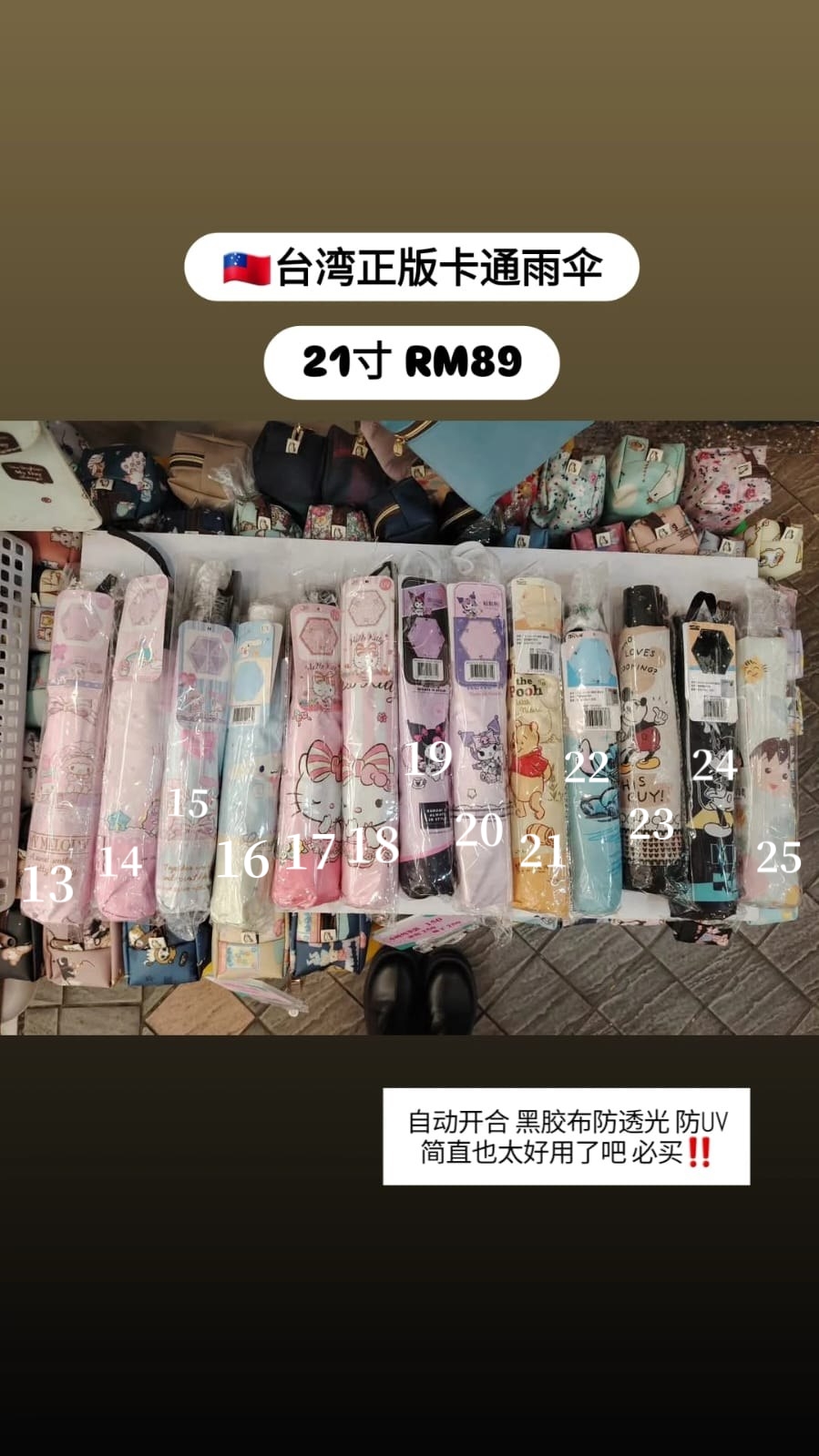 🇼🇸台湾正版卡通雨伞 自动开合 黑胶布防透光 防UV 简直也太好用了吧 必买‼️ 21寸 RM89 赶快PM我们下单📲📲