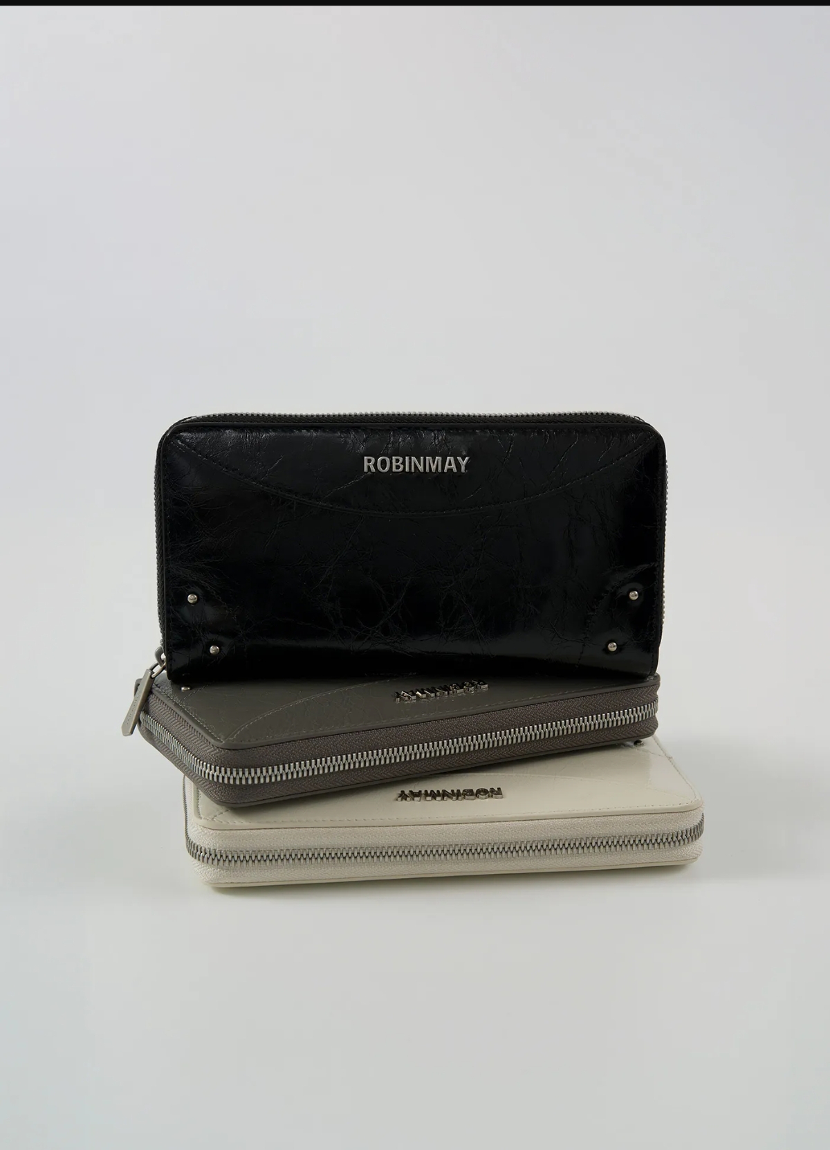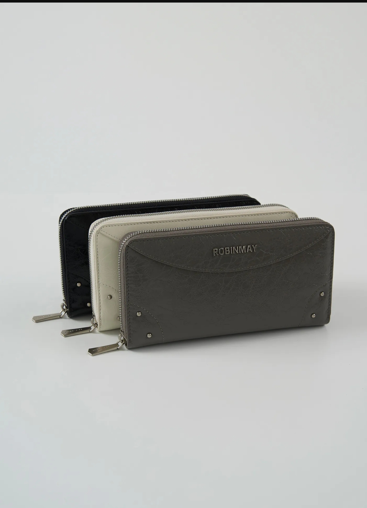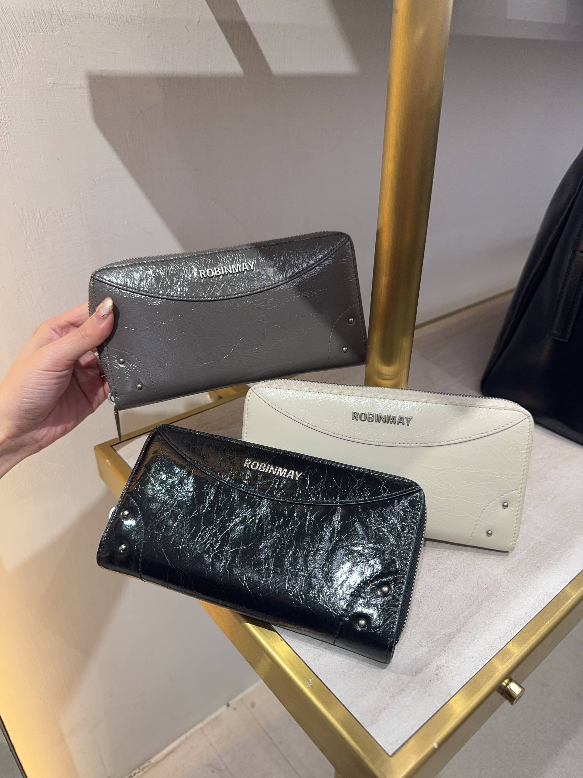 🇼🇸ROBINMAY『Crystal真皮长夹(头层皮)』 独特打皱皮纹造型拉链长夹,个性时髦风格 厚度适中、两侧铆钉点缀造型、丰富收纳空间 现在打折offer 只需✨RM259 省超多 西马还包邮 赶快PM我们下单📲