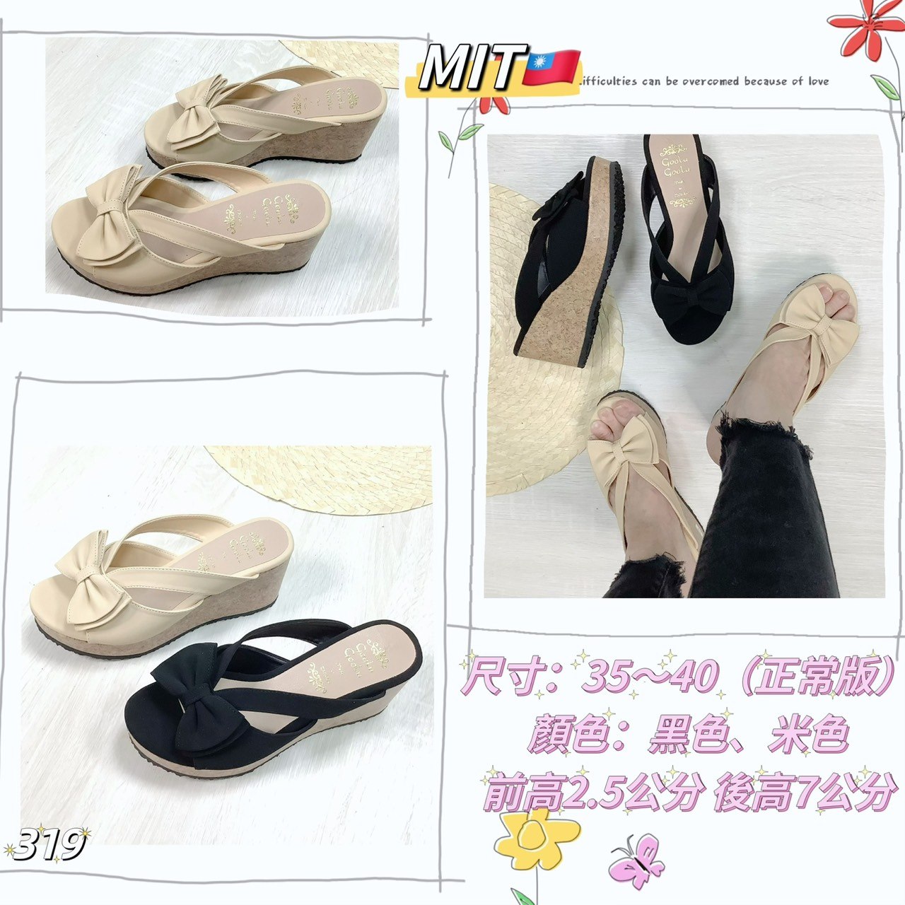 319 蝴蝶结厚底凉鞋