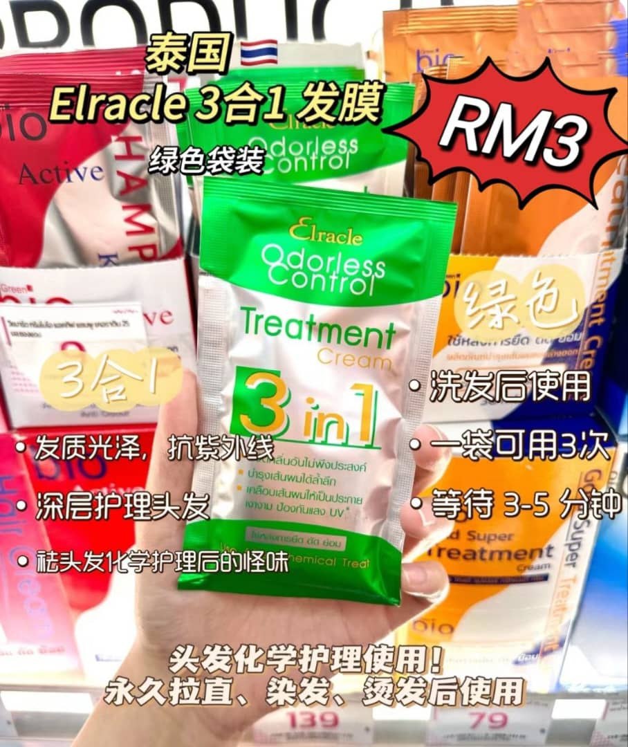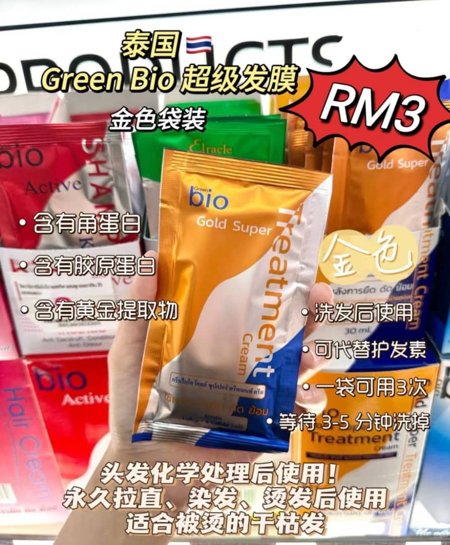一包才RM3的发膜‼️ (买5送2 可参颜色) 头发干燥,打结,受损的⚠️ 这个用一次就有效,洗完后头发又顺又滑,立马神仙救回啊😍 分包装的 要带出门很方便 1包可以用3–4次(看头发长度) ①蓝色发膜: 经典款,头发超级柔顺 ②金色发膜: 含有角蛋白、胶原蛋白、黄金提取物。头发特别干枯的冲呀 ④绿色发膜: 3合1,专门洗掉化学护理后的味道,洗掉染发的味道等等 ⑤红色洗发水: 是洗发水!可祛头皮屑,减少脱发,洗掉化学护理后的味道!