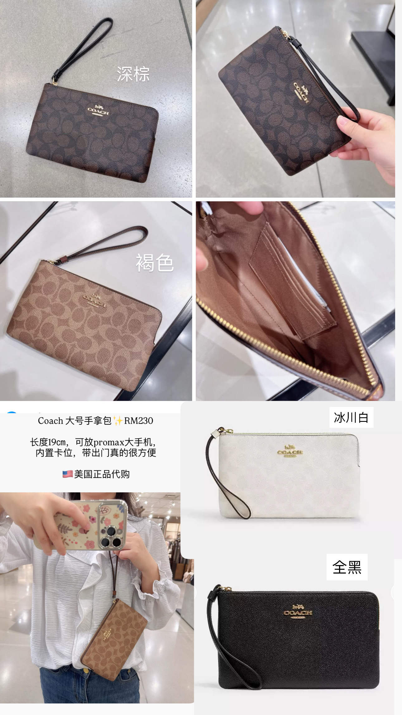 Coach 大号手拿包✨RM230 长度19㎝,可放promax大手机,内置卡位,带出门真的很方便 🇺🇸美国正品代购