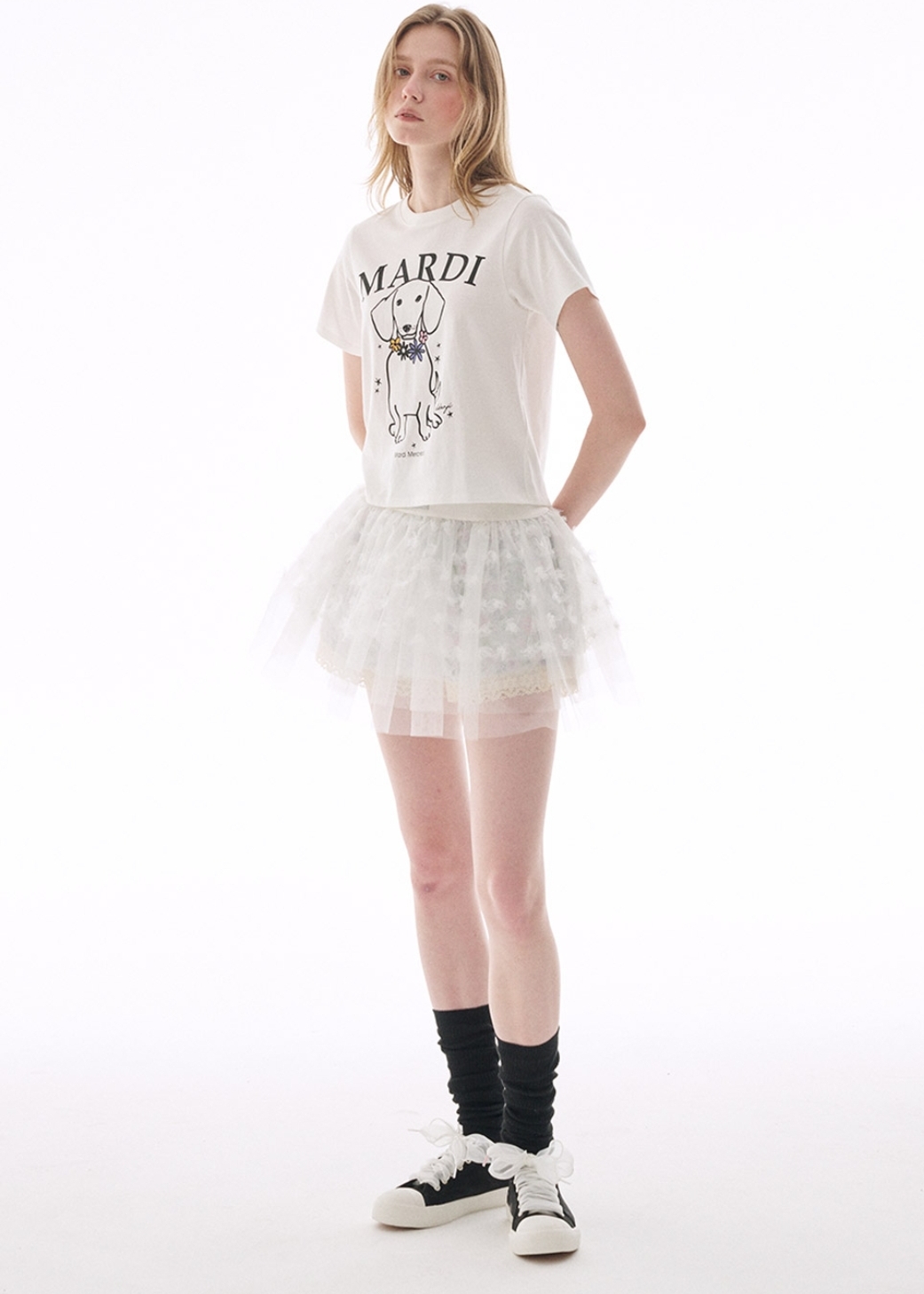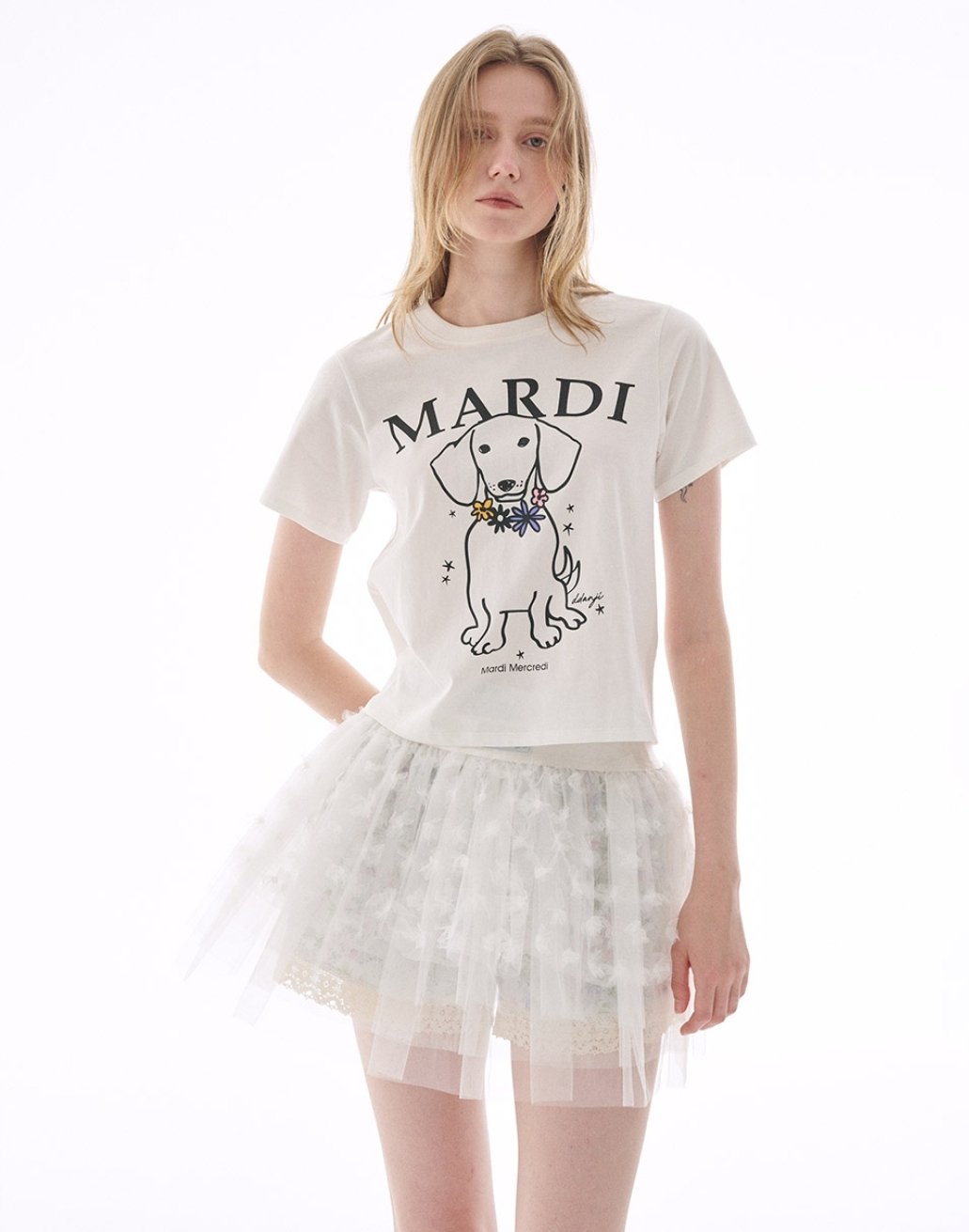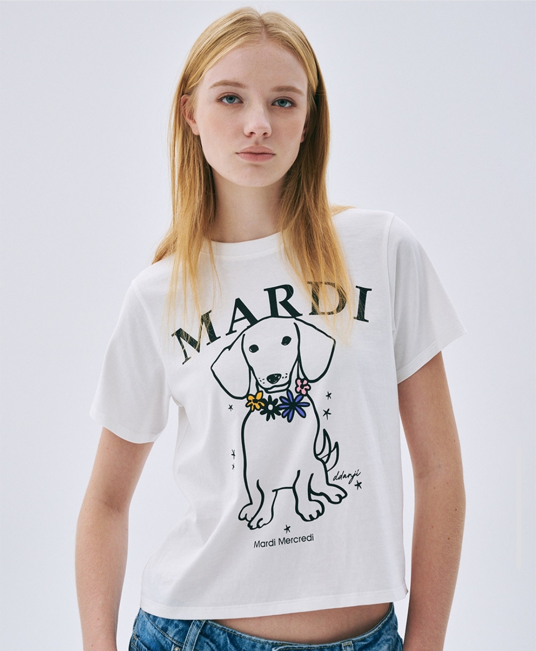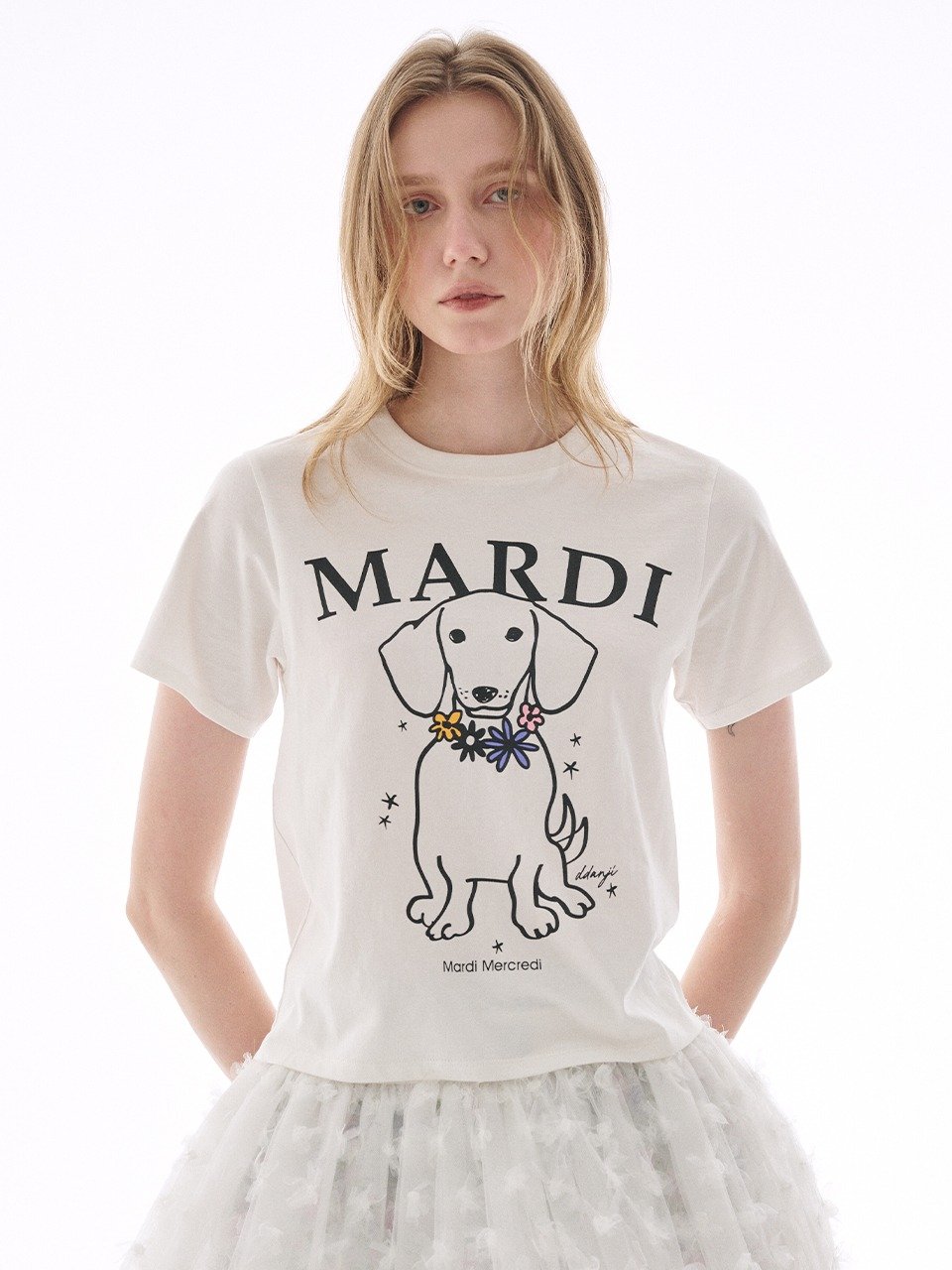 Mardi-修身款狗狗上衣[EXCLUSIVE] SLIM TSHIRT SWING THE TAIL DDANJI FLOWER NECKLACE MULTICOLOR