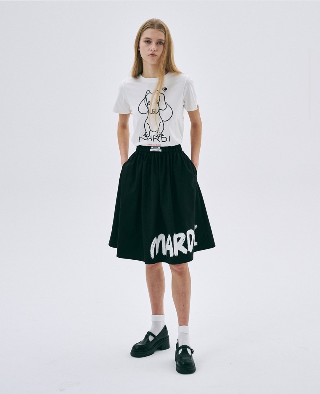 🇰🇷Mardi 修身款狗狗上衣 SLIM TSHIRT DDANJI CH.02 RM145 颜色: IVORY BLACK 象牙白黑 尺码:FREESIZE 长度49 肩宽36.5 胸围87 袖长17 Mardi 🇰🇷小众品牌~ 追星女孩为爱豆同款冲它,文艺青年爱它的书卷气,就连穿搭博主都靠它打造“看起来很有钱”的effortless造型~