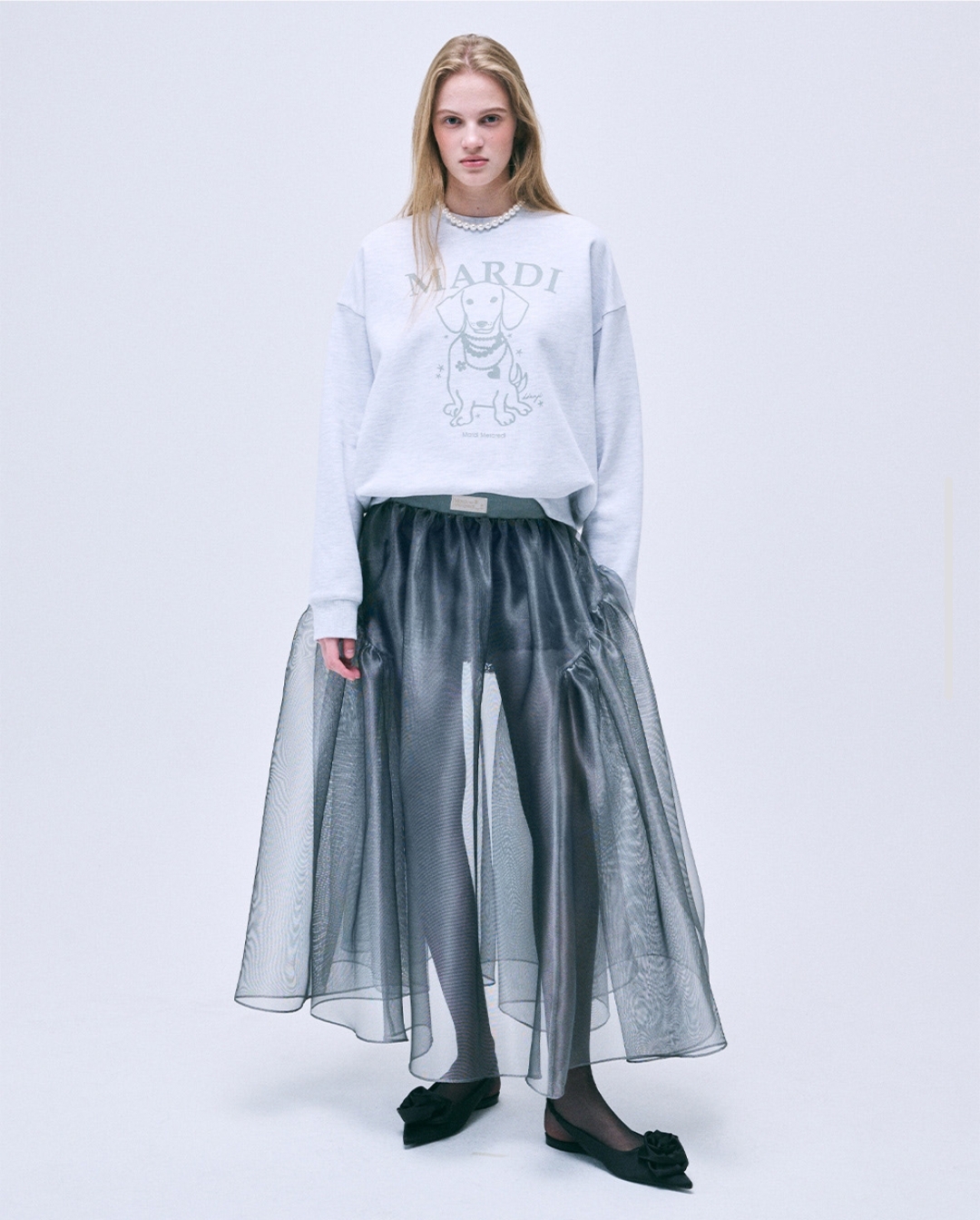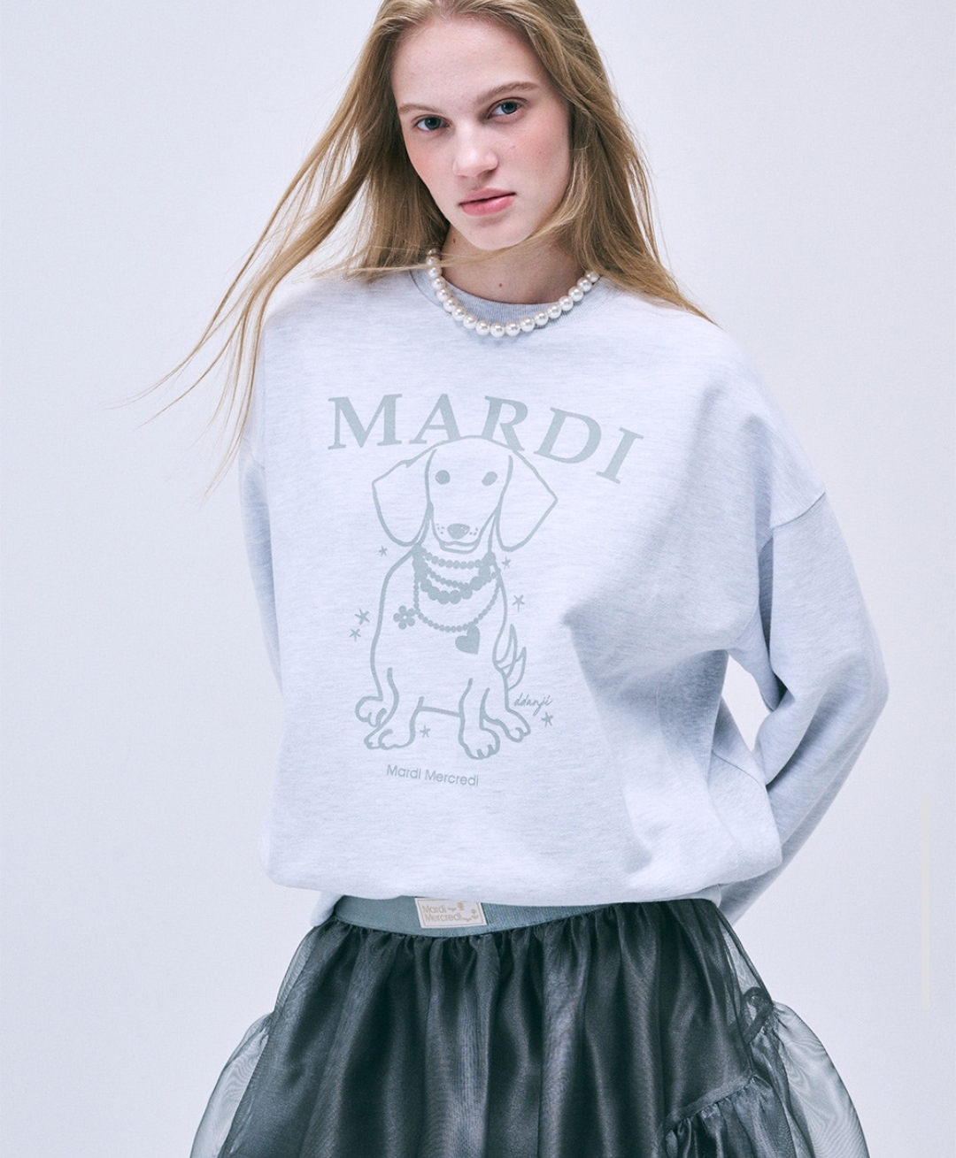 🇰🇷Mardi 印花款珍珠项链狗狗卫衣 SWEATSHIRT SWING THE TAIL DDANJI PEARL NECKLACE RM185 颜色: HEATHER LIGHTGREY 石南花浅灰色 WHITE LIGHTGREY 白色浅灰色 尺码:FREESIZE 长度63 肩宽62 胸围130 袖长54 Mardi 🇰🇷小众品牌~ 追星女孩为爱豆同款冲它,文艺青年爱它的书卷气,就连穿搭博主都靠它打造“看起来很有钱”的effortless造型~