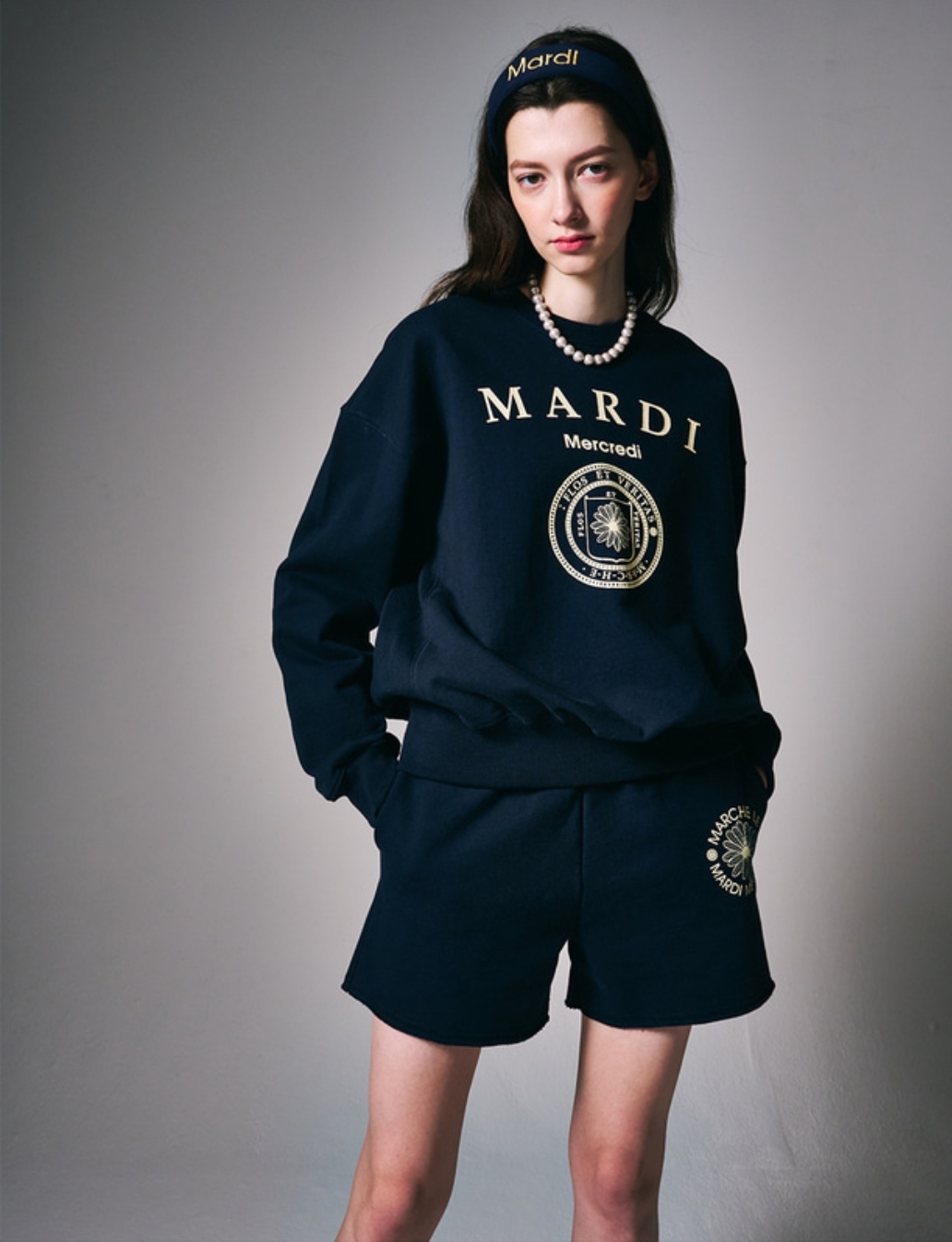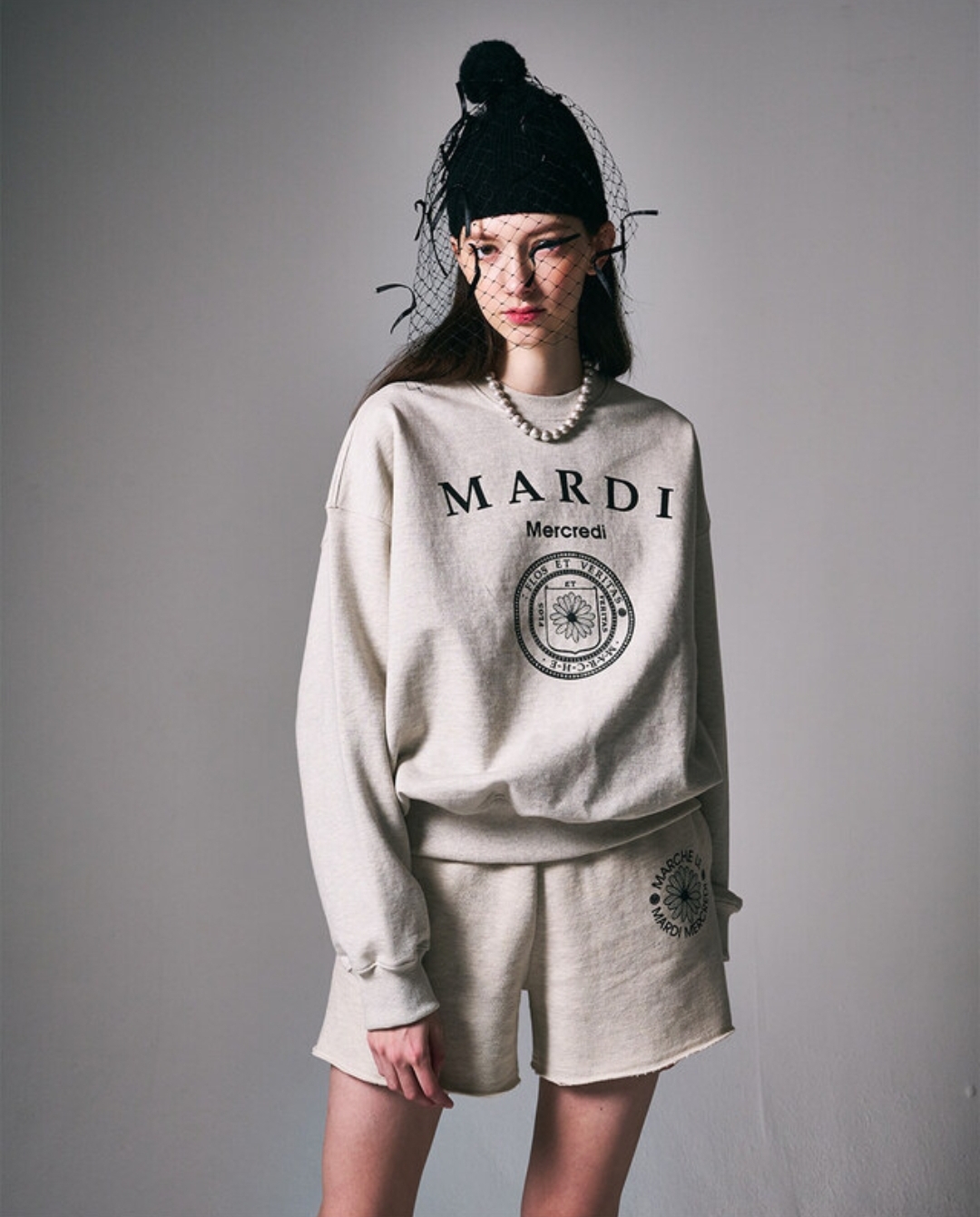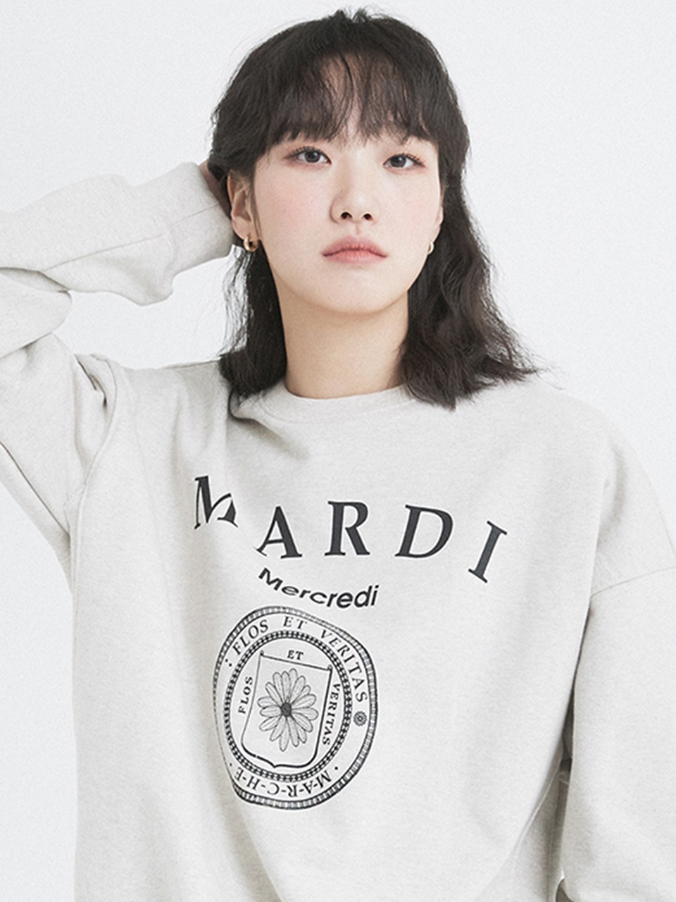 🇰🇷Mardi 印花款皱菊徽章卫衣 SWEATSHIRT UNIV RM235 颜色: OATMEAL BLACK 燕麦黑 NAVY IVORY 海军蓝象牙白 尺码:FREESIZE 长度63 肩宽62 胸围130 袖长54 Mardi 🇰🇷小众品牌~ 追星女孩为爱豆同款冲它,文艺青年爱它的书卷气,就连穿搭博主都靠它打造“看起来很有钱”的effortless造型~