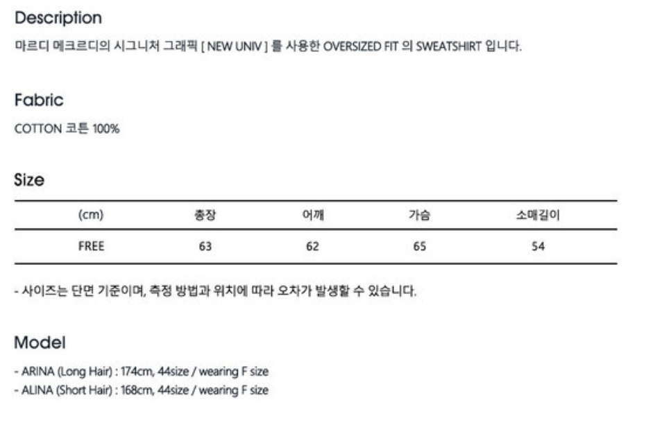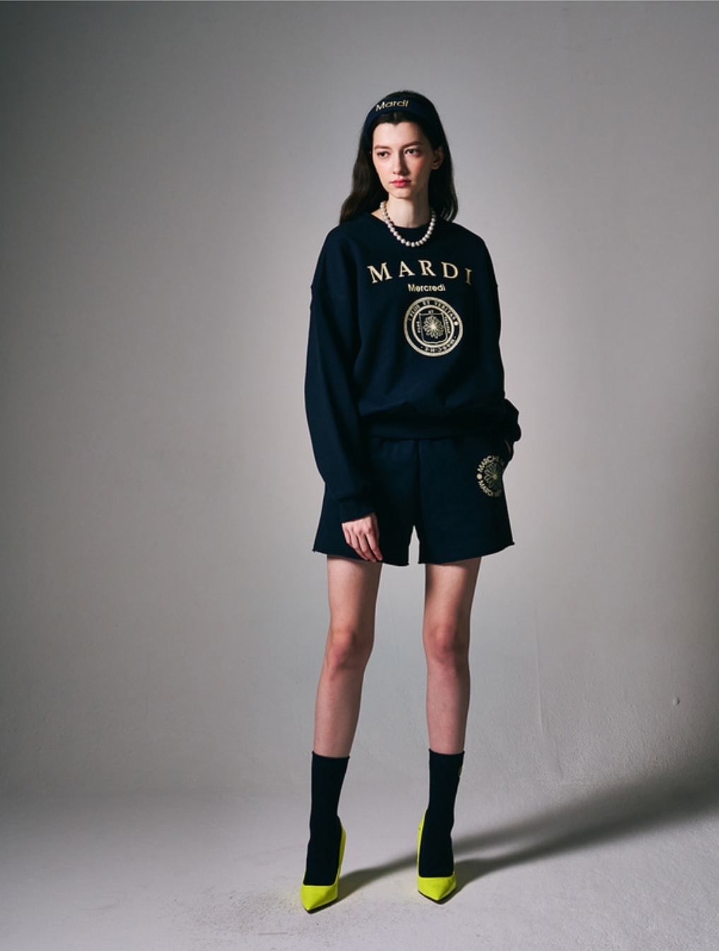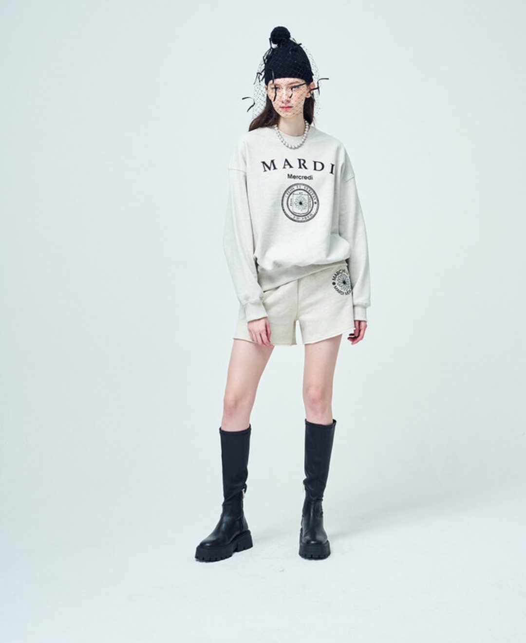 🇰🇷Mardi 印花款皱菊徽章卫衣 SWEATSHIRT UNIV RM235 颜色: OATMEAL BLACK 燕麦黑 NAVY IVORY 海军蓝象牙白 尺码:FREESIZE 长度63 肩宽62 胸围130 袖长54 Mardi 🇰🇷小众品牌~ 追星女孩为爱豆同款冲它,文艺青年爱它的书卷气,就连穿搭博主都靠它打造“看起来很有钱”的effortless造型~
