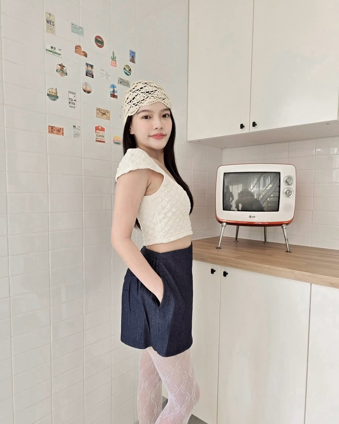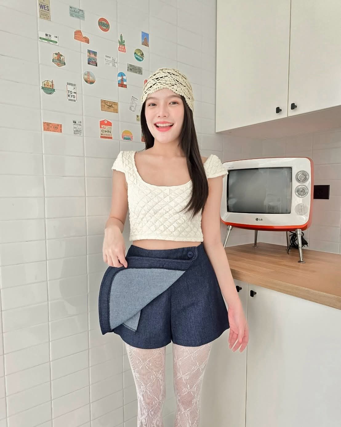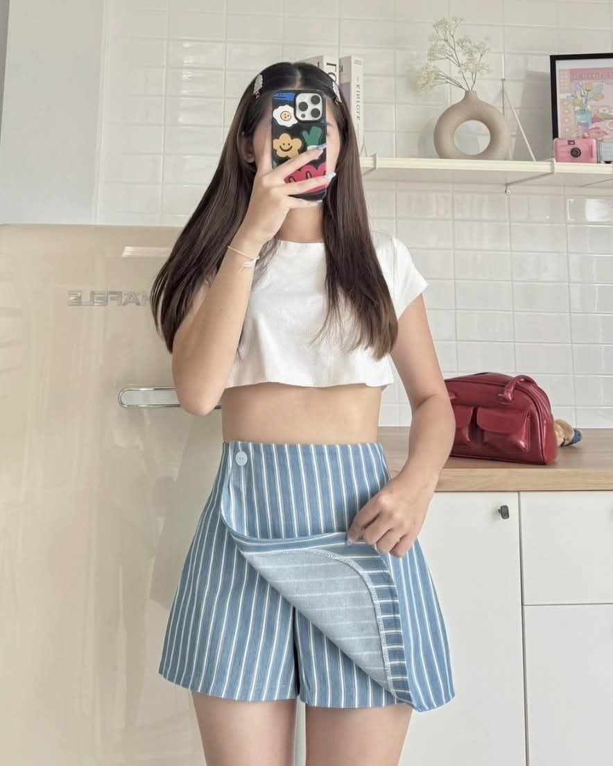 •Freesize 24Inc to 32lnc (61-82 cm.) •Hip 40Inc (102cm.) •Long 13 lnc (33cm.) 颜色: 单色浅蓝|单色深蓝|线条浅蓝|线条深蓝 🇹🇭泰国代购中 姐妹们赶快来下单📲🛒