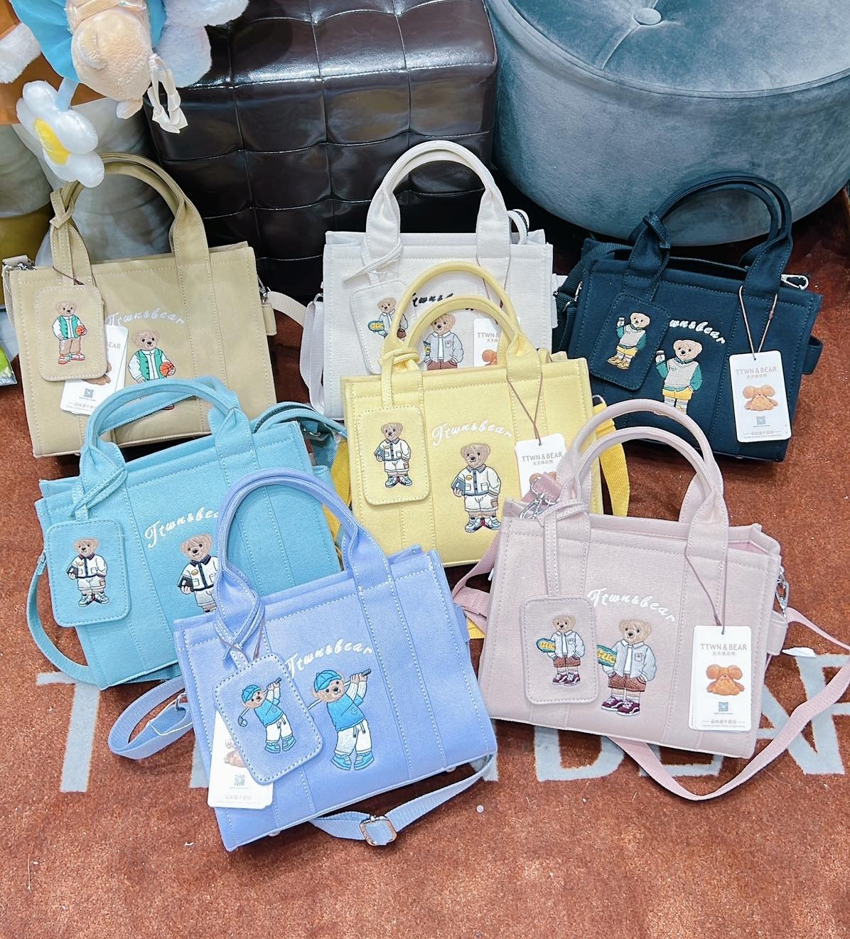 🎈🧸❤️New arrival❤️🧸🍭 #ttwnbear new colorful canvas shopper bags in 2 sizes S and M. Available in 7 colors❤️Super very cute😍😍😍Available now at our store in Bangkok😍🧸🙋🏻♀️🇹🇭 🎀S size TN3761 18*11*15.5cm 💐M size TN3548 25.5*12*21cm 🌷L size TN3560 33*25*25.5cm ✅团购优惠 ✅西马还包邮 这些都是「超低批发价」 所以热门款很快会卖完 先汇款先哟~